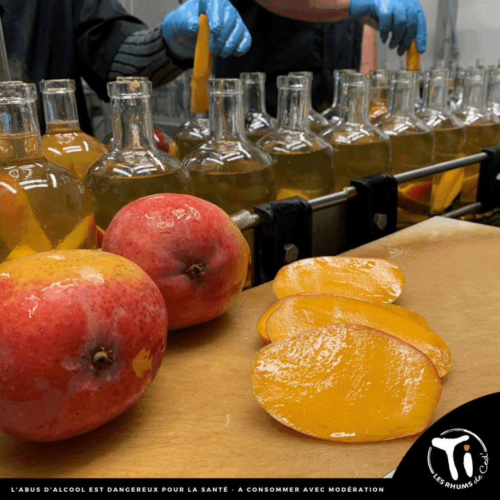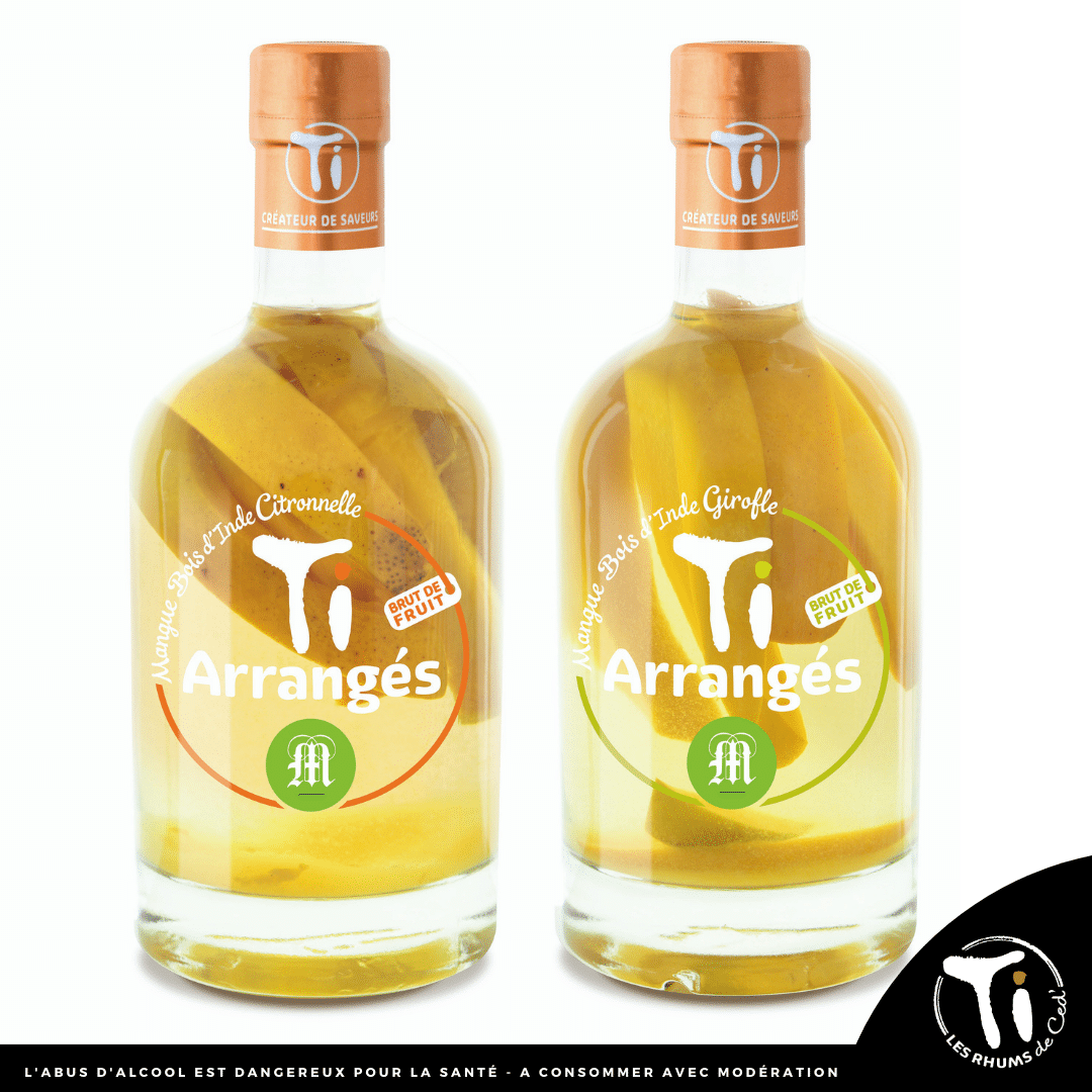 Chacune de ces deux cuvées Ti Arrangés de Ced’ est donc élaborée à base d’un rhum agricole de Guadeloupe non réduit dans lequel l’équipe des Rhums de Ced’ vient réaliser une infusion séparée de deux variétés bois d’Inde (Citronnelle ou Girofle) pendant une semaine. Une mangue, récoltée à maturité, est ensuite délicatement découpée et mise en bouteille à la main dans le mélange. La macération se fait ensuite en bouteille.