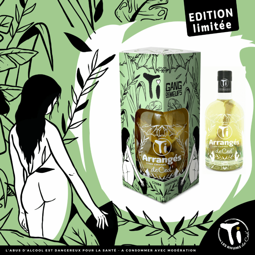 A l’occasion du 2ème anniversaire de sa recette GwaMaRé Citron Gingembre, Ced’ nous dévoile une édition limitée en collaboration avec la tatoueuse Chantal Frontale. La créatrice nantaise réinterprète la naturalité des ingrédients sur une bouteille événement entièrement sérigraphiée et un étui personnalisé. Un partenariat Rhums de Ced’ « 100% Made in Nantes » comme les affectionne tout particulièrement Cédric Brément ! Rencontre avec l’artiste Chantal Frontale qui nous présente sur ce nouveau Ti Arrangé un « Gang de Meufs » entre poésie et sensualité.