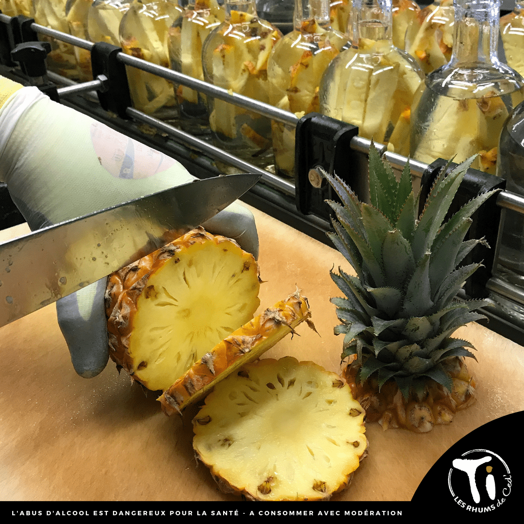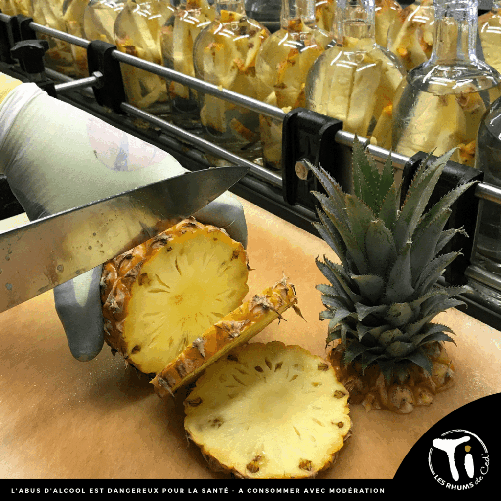 « Depuis la création des Rhums de Ced’, je travaille en étroite collaboration avec des producteurs d’ananas Victoria de l’île de la Réunion. La récolte à maturité naturelle sur la plante et la rapidité d’acheminement vers notre atelier sont des règles d’or sans quoi nous ne pourrions pas proposer la fraîcheur unique de notre Ti Arrangés de Ced’ Ananas Victoria. Chaque ananas est découpé au couteau le jour de sa réception à l’atelier et est mis en bouteille à la main dans la foulée.«