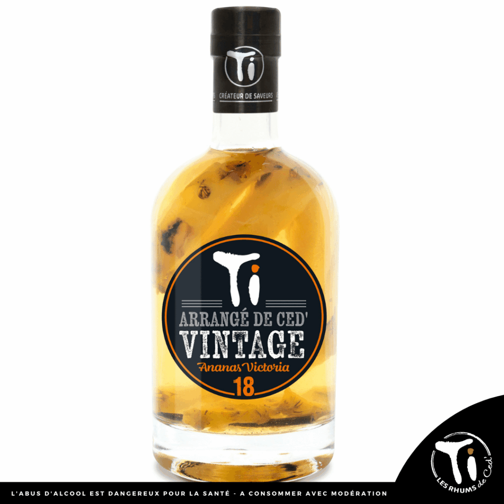La cuvée VINTAGE de ce Ti Arrangés de Ced’ Ananas Victoria, réalisée en mars 2018, se présente comme une invitation à la gourmandise ! Au nez, l’ananas est juteux, cuisiné, pâtissier… En bouche, le caractère est séduisant sur des notes grillées, caramélisées, presque dorées. Le jus de canne est soigneusement fondu avec une finale longue et gourmande. Produite en Edition Limitée, cette recette promet d’ores et déjà de grands moments de partage à quelques semaines des fêtes de fin d’année.